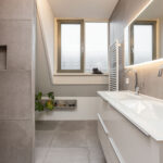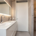 Op de eerste verdieping bevinden zich twee ruime slaapkamers, die dankzij ramen aan zowel de voor- als achterzijde van de woning een optimale lichtinval en aangename sfeer bieden. De luxe badkamer, volledig vernieuwd in 2022 is voorzien van een ruime inloopdouche, dubbele wastafelmeubel en toilet.