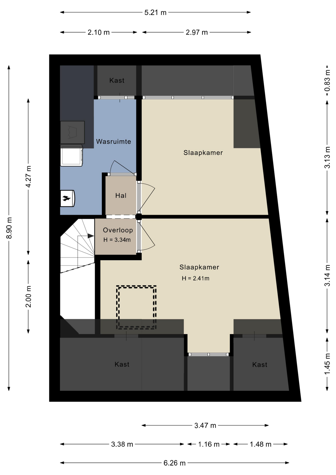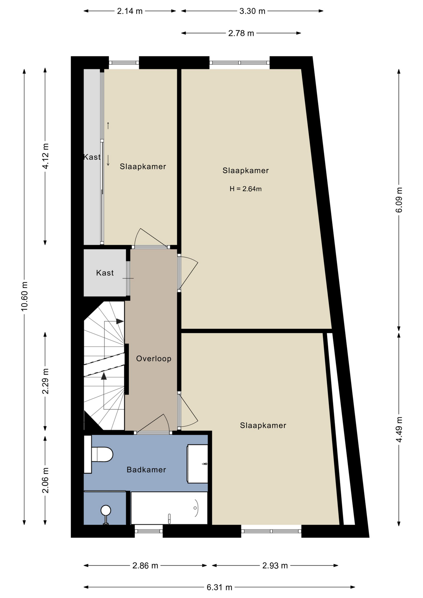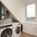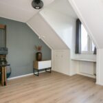 De bovenste etage biedt twee lichte slaapkamers dankzij de brede dakkapellen. De grootste kamer beschikt daarnaast over een Velux-dakraam en extra bergruimte. Verder is er een aparte bergkamer met cv-opstelling, WTW-unit, wasmachine- en drogeraansluiting. Ook hier is airconditioning aanwezig.