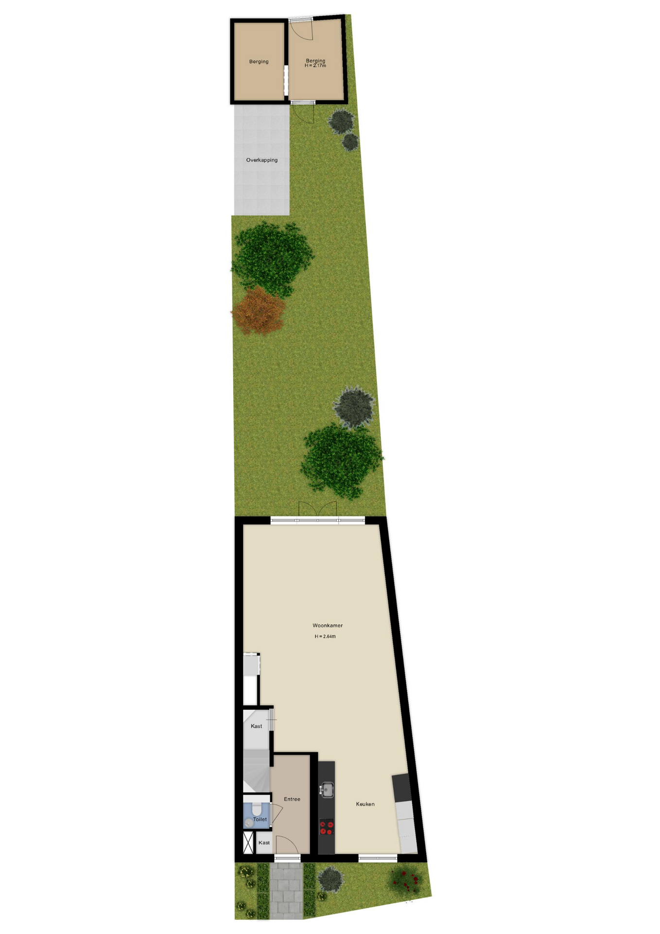 - Diepe achtertuin op het zuidwesten met veranda en berging