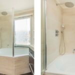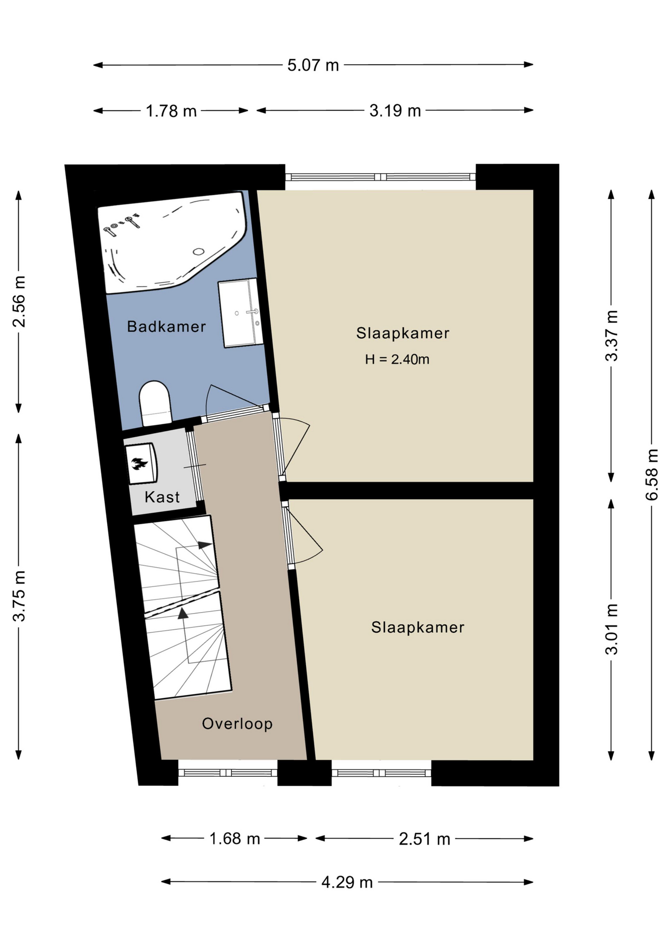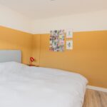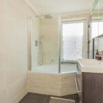 Deze woning biedt 4 slaapkamers verdeeld over twee verdiepingen. Op de eerste verdieping bevinden zich twee slaapkamers en de moderne badkamer, voorzien van een ligbad met douche, wastafelmeubel met medicijnkast en een toilet. Op de overloop vind je daarnaast een bergkast met daarin de cv-installatie.