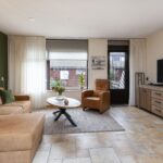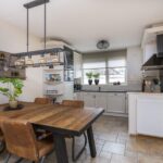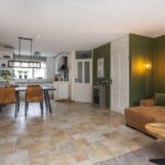 Je betreedt de woning in de ruime hal, waar je een toiletruimte met fontein, een bergkast, meterkast, ruimte voor een garderobe en de trapopgang aantreft. De trap is recent gerenoveerd. Toegang tot de woonkamer met open keuken. De sfeervolle woonkamer is heerlijk ruim en lekker licht, voorzien van een moderne afwerking, een plavuizenvloer in wildverband en verleent je toegang tot de achtertuin. De gezellige zithoek is tuingericht en een grote eethoek is betrokken bij de keuken. De keuken is ingericht met een licht keukenmeubel in een U-opstelling, waardoor je over veel werkruimte beschikt. De keuken is compleet uitgerust, met onder andere: een 5-pits inductiekookplaat (2022), afzuigkap, een magnetron, een oven (2022), koelkast en een vaatwasser. Er is genoeg opbergruimte voor je keukengerei in de kasten en lades, en je voorraad berg je gemakkelijk op in de trapkast.