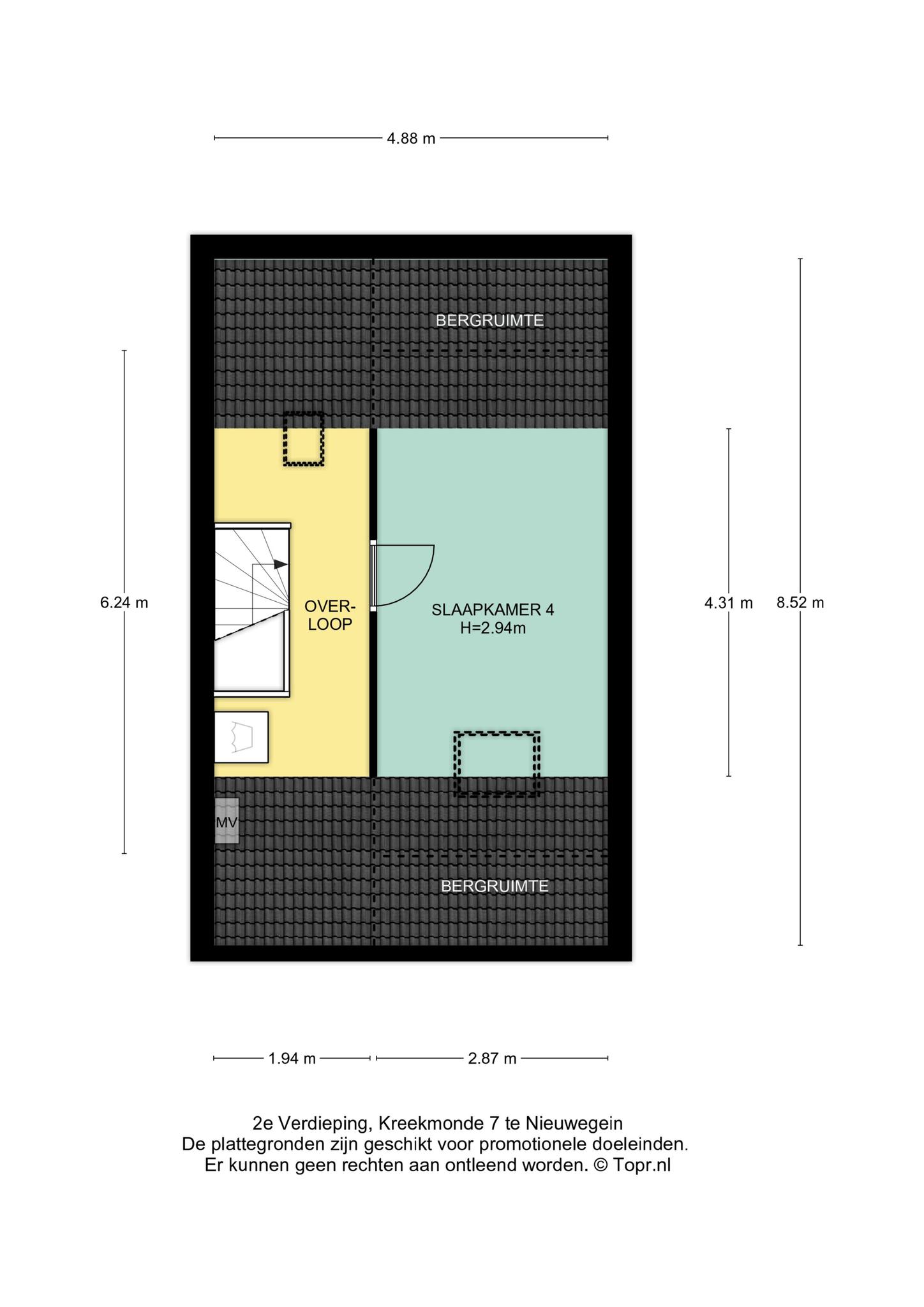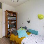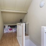 Via een vaste trap bereik je de overloop op de tweede verdieping. Hier tref je de witgoedaansluitingen, mechanische ventilatie opstelling en krijg je toegang tot de vierde slaapkamer. Ook deze kamer is voorzien van een nette afwerking, een laminaatvloer en een prettige lichtinval. Je beschikt tevens over extra opbergruimte achter de knieschotten.