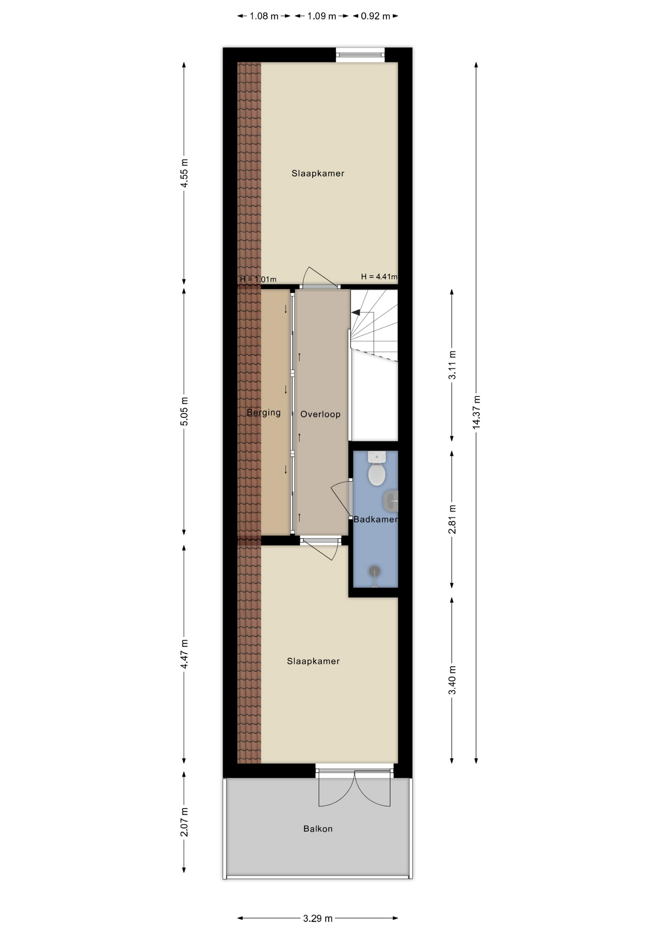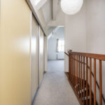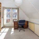 Een royale overloop met inbouwkasten, tweede badkamer voorzien van douche en tweede toilet. Verder is er toegang tot twee slaapkamers. De kamer aan de achterzijde en de kamer aan de voorzijde met toegang tot het zonnige balkon op het zuiden, zijn beide voorzien van extra bergruimte.