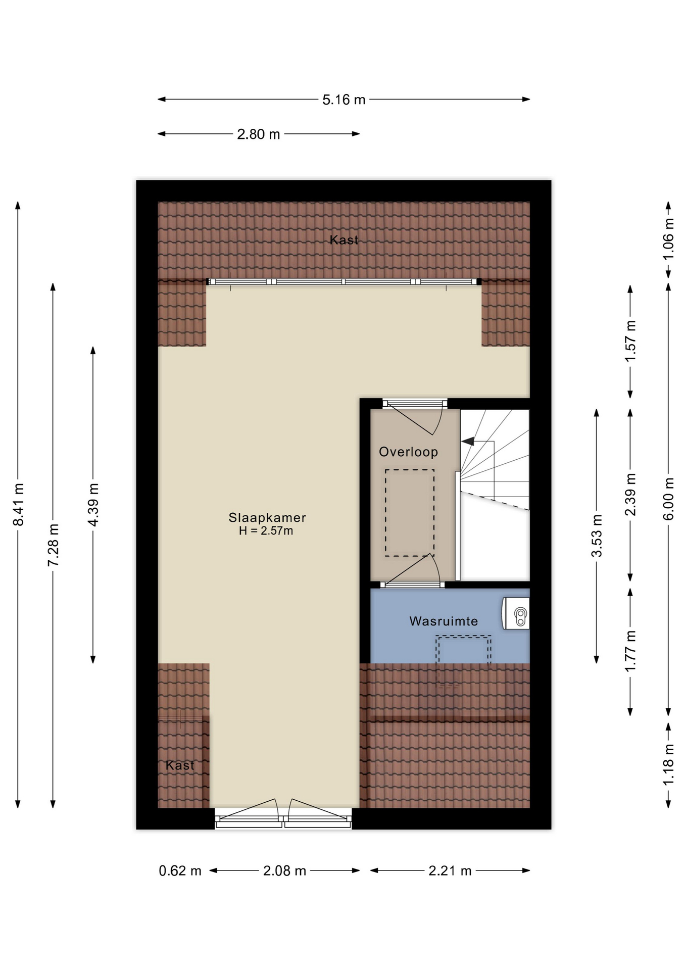 Hier bevindt zich een ruime overloop met vlizotrap naar een royale vliering. Daarnaast is er een grote vierde slaapkamer welke erg licht is door de grote dakkapel aan de achterzijde en de grote raampartijen aan de voorzijde. Ook is er een aparte wasruimte met dakraam, cv-ketel en aansluitingen voor wasmachine en droger.