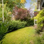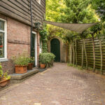 De woning is omgeven door een groene, parkachtige tuin met volwassen beplanting, die veel rust en privacy biedt. Op het eigen terrein is parkeergelegenheid aanwezig, wat bijdraagt aan het dagelijks comfort. De tuin vormt een beschutte buitenruimte waar in alle seizoenen van het groen kan worden genoten.