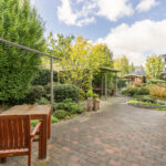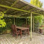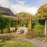 Buiten tref je niet alleen parkeergelegenheid op eigen terrein aan, waardoor je nooit meer op zoek hoeft naar een parkeerplek, maar ook een garage die ruimte biedt voor je auto, fietsen of extra opslag. De tuin zelf is een plek waar rust en groen samenkomen; een zonnig toevluchtsoord dat is uitgerust met een gezellige overkapping en een stevige houten berging. Hier kun je ongestoord genieten van het groen en de rust van je eigen domein.