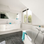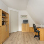 Omhoog leidend naar de eerste verdieping, biedt het huis drie goed bemeten slaapkamers. De ruime ouderslaapkamer is een bijzonder pluspunt, met een praktische inloopkast die veel opbergruimte biedt voor kleding en accessoires. De moderne badkamer, uitgerust met vloerverwarming, een ligbad, inloopdouche en een wastafelmeubel, biedt een frisse start van je dag.