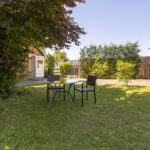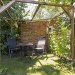 De op het zuiden gelegen tuin is zonovergoten, maar biedt tevens voldoende schaduwrijke en beschutte plekken om heerlijk te ontspannen. Naast de vrijstaande garage treft u in de riante tuin een stenen schuur, berging, biologische moestuin, prachtige bloementuinen, pergola, grote vijverpartij en beschutte tuinkamer aan. De tuin en garage zijn goed toegankelijk via een stalen hekwerk naast de woning.