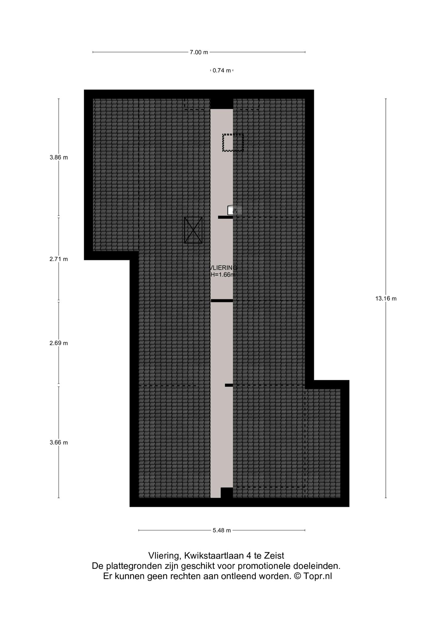 Via een luik met vlizotrap in de hal van de woning is de zeer ruime, over de volle breedte van de woning strekkende bergvliering toegankelijk. Naast de enorme hoeveelheid aan bergruimte treft u hier ook de CV-opstelling aan en is er daglichttoetreding via een Velux-dakraam.