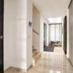 Bij binnenkomst valt gelijk de riante hal op met prachtige granieten vloer die doorloopt naar de woonkamer en keuken. De stijlvolle hal biedt toegang tot een luxe toilet en op maat gemaakte kasten met volop bergruimte.