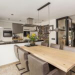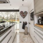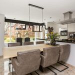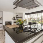 De moderne woonkeuken is een droom voor iedere kookliefhebber, uitgerust met hoogwaardige inbouwapparatuur zoals een gaskookplaat, wijnklimaatkast, combi-stoomoven en zelfs een tweede gashaard voor extra sfeer. De gehele begane grond is voorzien van vloerverwarming.