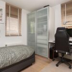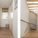 De eerste verdieping wordt bereikt via een trap bekleed met eikenhout dat doorloopt over de gehele verdieping. Hier vind je drie ruime slaapkamers, mogelijkheid om er 4 van te maken, waaronder een luxe master bedroom met een op maat gemaakte inloopkast. De stijlvolle badkamer is voorzien van een ruime douche, dubbele wastafel, vloerverwarming en een separaat Geberit-toilet met aqua clean douche.