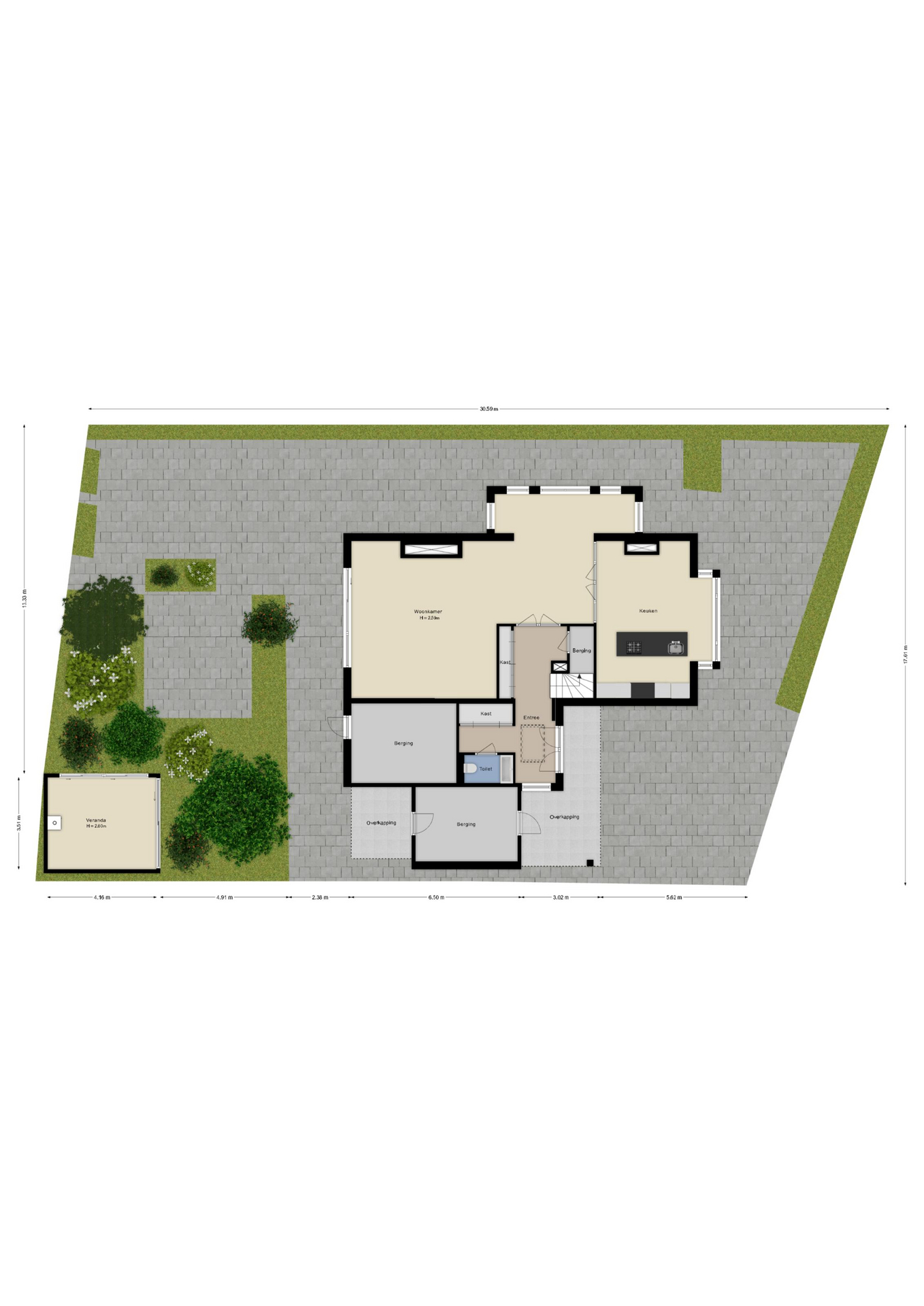 De zonnige, fraai aangelegde tuin rondom de woning is een waar paradijs: geniet van de rust en privacy, de vijver, diverse terrassen, de veranda met glazen schuifwanden en houtkachel – perfect voor lange zomeravonden, barbecues en borrels. Daarnaast beschik je over twee bergingen, parkeerplaatsen voor meerdere auto’s en een elektrisch laadpunt.