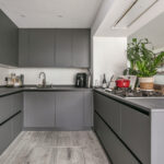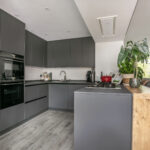 - Riante, modern afgewerkte keuken met schiereiland en bar;