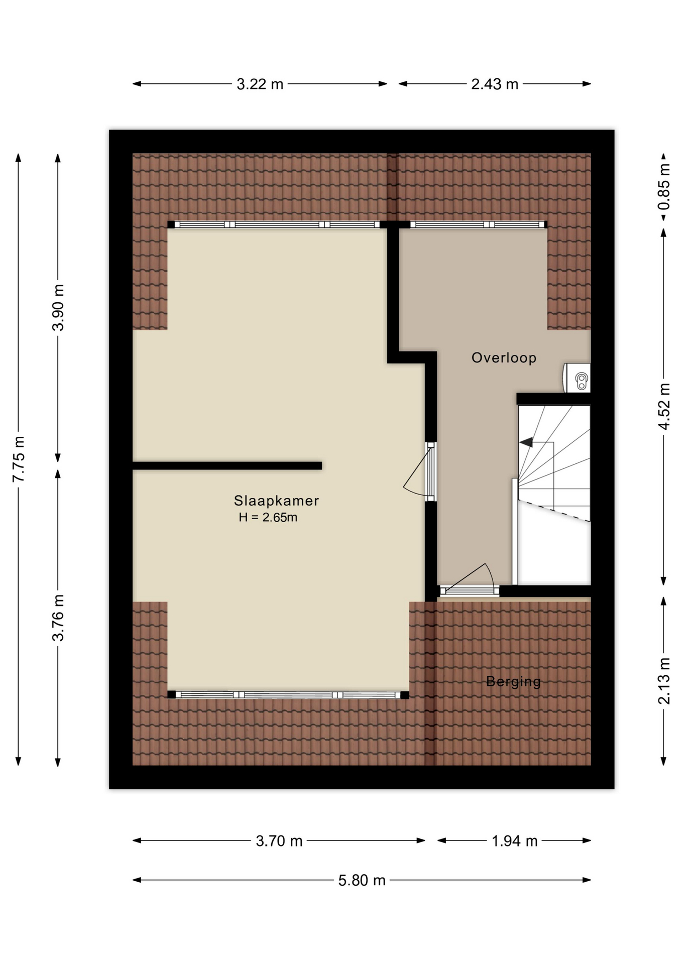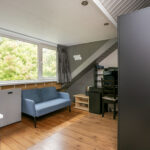 Voor én achter zorgen grote dakkapellen voor veel daglicht. Met een eenvoudige aanpassing (het bestaande wandje doortrekken) creëer je hier twee volwaardige slaapkamers. Voorin is een extra wastafelmeubel aanwezig. Op de voorzolder en achter de knieschotten is volop bergruimte.
