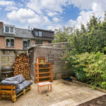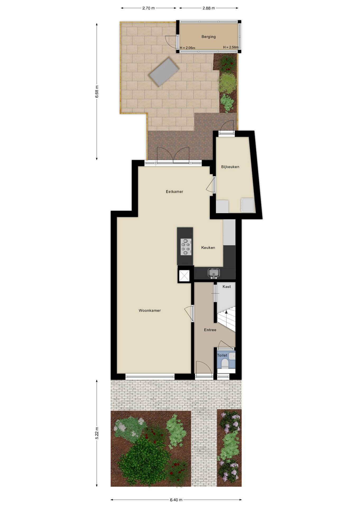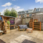 Zet de openslaande deuren open en verleng je woonkamer met de zonnige achtertuin op het zuidwesten. Achterin staat een vrijstaande berging en er is een handige achterom. In de ruime bijkeuken vind je de witgoedaansluitingen, volop kastruimte en een groot werkblad. Ook via hier loop je zó de tuin in.