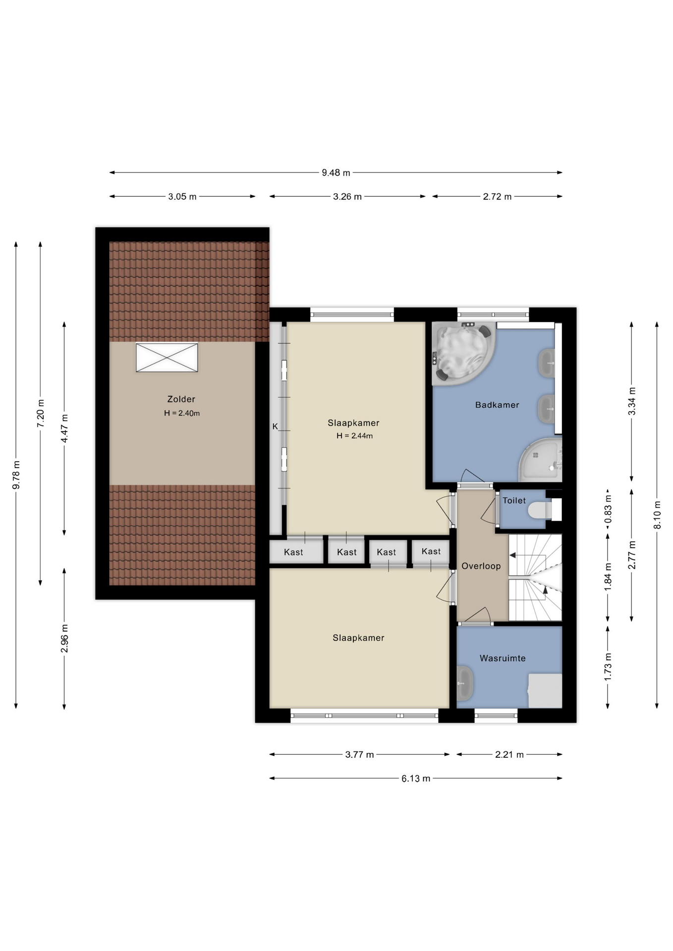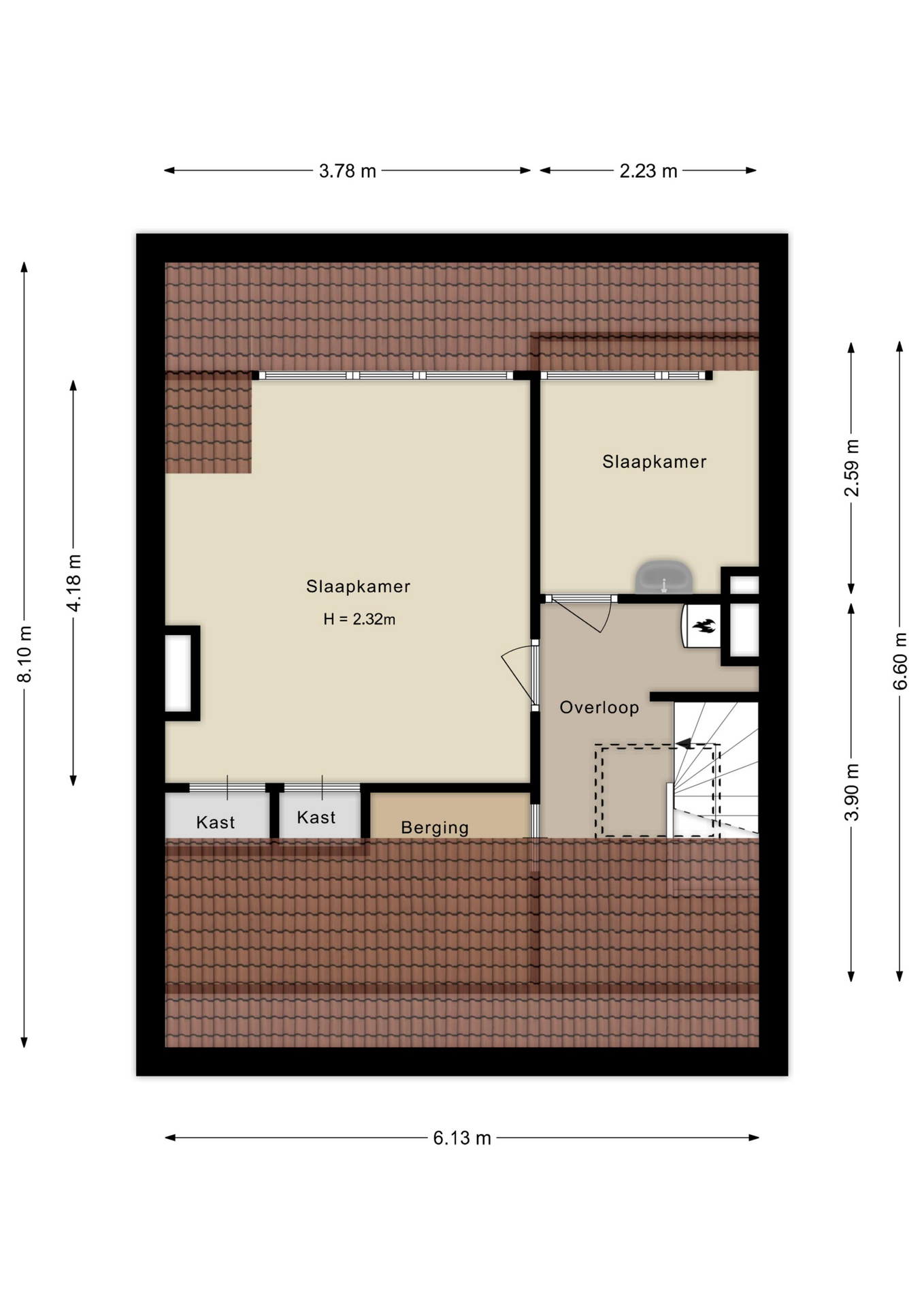 Via een vaste trap kom je op de tweede verdieping. De voorzolder is voorzien van een dakraam voor voldoende lichtinval. Hier is ook de CV installatie, welke in 2023 is vervangen. De twee slaapkamers op deze verdieping zijn voorzien van een dakkapel. De grootste kamer beschikt over veel bergruimte achter de knieschotten en de andere kamer beschikt over een wastafel.