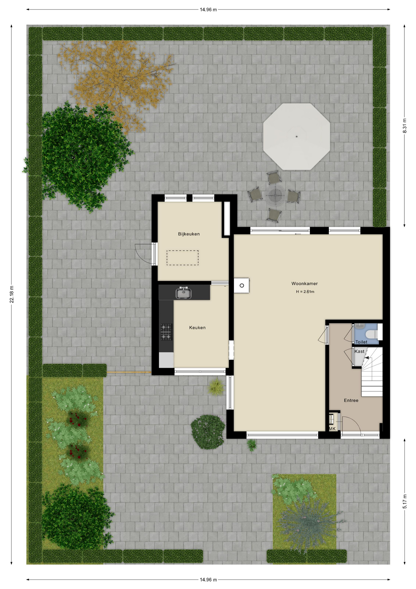 - Veel leefruimte door uitbouw en opgesplitste garage