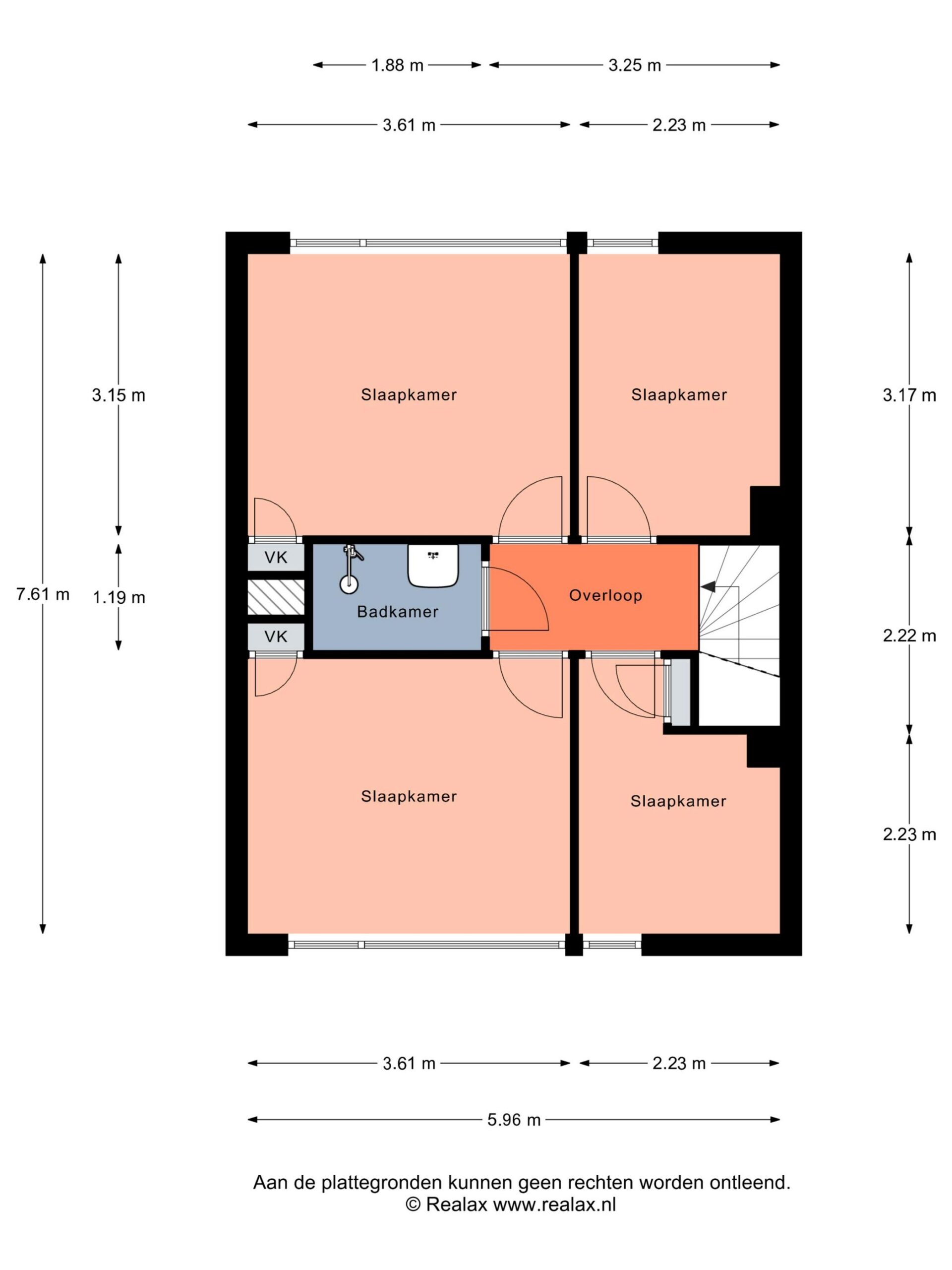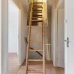 Overloop met toegang tot de slaapkamers en badkamer en een luik naar de bergzolder.