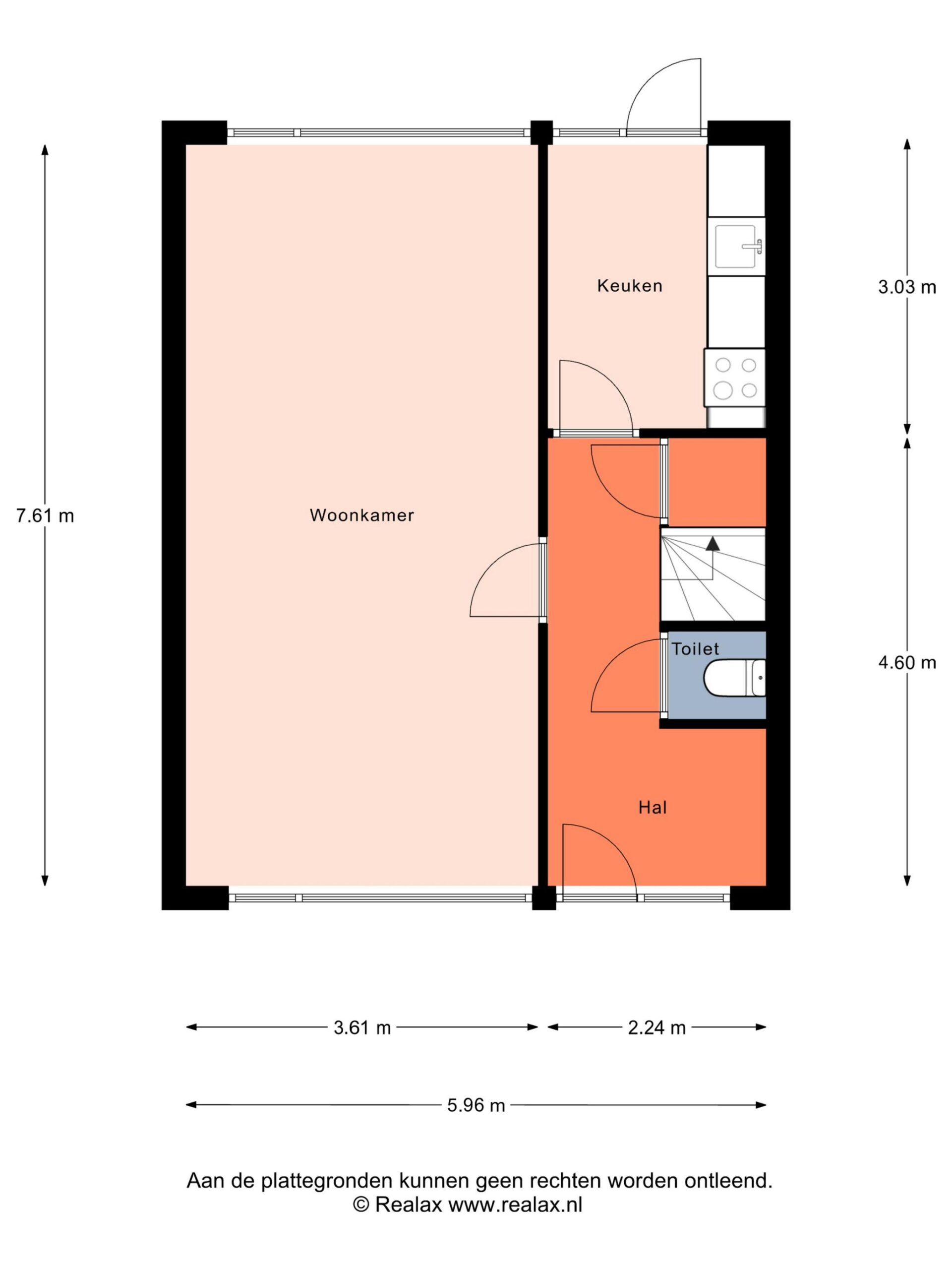 Entree, hal met standaard afgewerkte toiletruimte voorzien van closet, trapkast met nieuwe groepenkast, trapopgang en toegang tot de keuken en woonkamer.