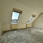 Overloop. Twee grote slaapkamers, waarvan de grootste is voorzien van twee dakramen. Vernieuwde badkamer met douchehoek, wastafel en toilet.