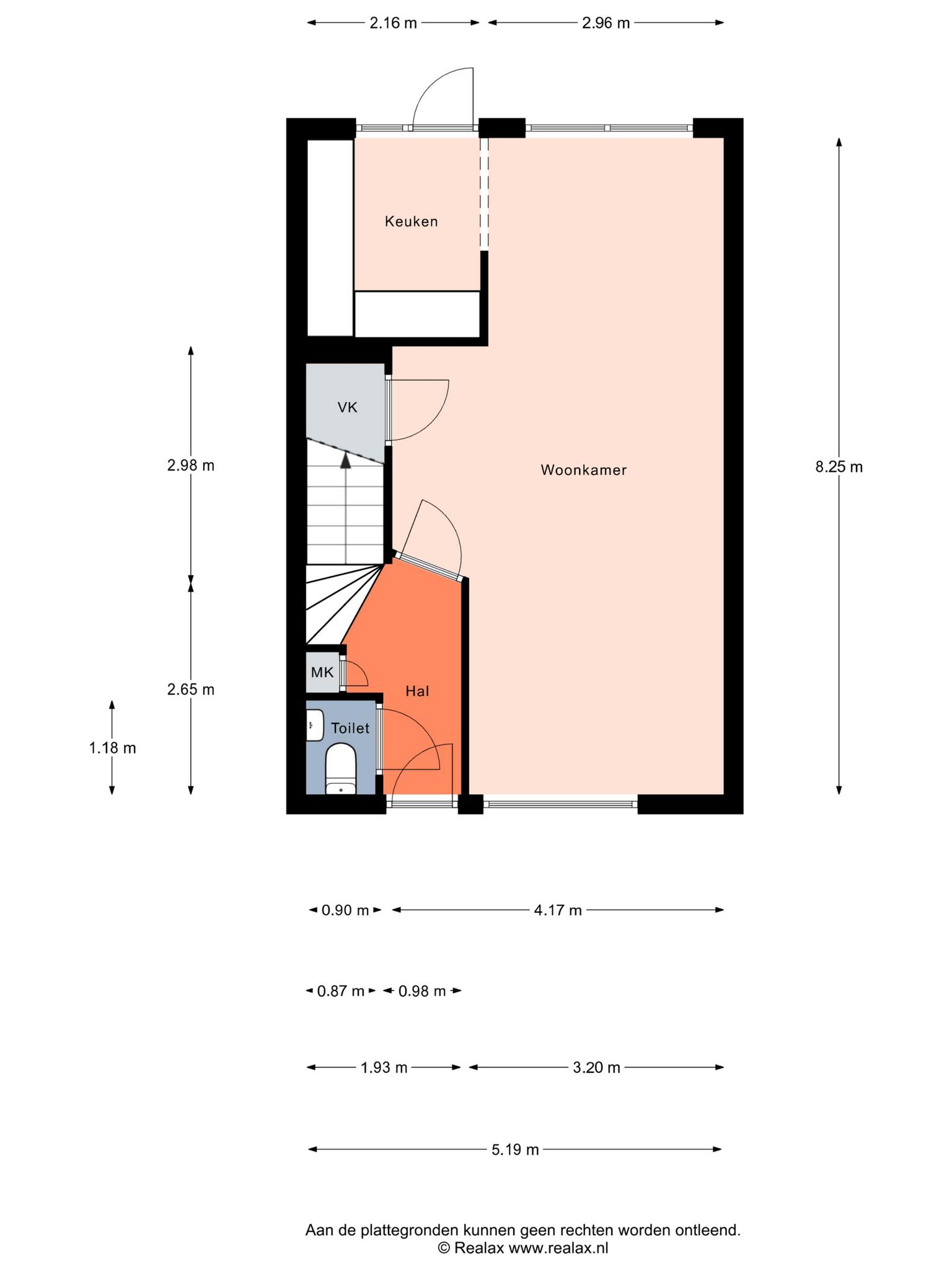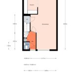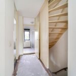 Hal/entree met meterkast, toilet met fonteintje en trapopgang. Ruime, lichte woonkamer met een vaste kast onder de trap en een open (nog te plaatsen) keuken aan de achterzijde.