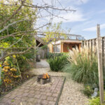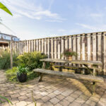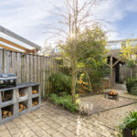 De achtertuin is gelegen op het zuiden en daarmee een heerlijke plek om volop van de zon te genieten. De tuin beschikt over een gezellige overkapping voor schaduwrijke momenten, terwijl de vrijstaande houten berging met elektra extra opbergruimte biedt voor tuingereedschap, fietsen en meer.
