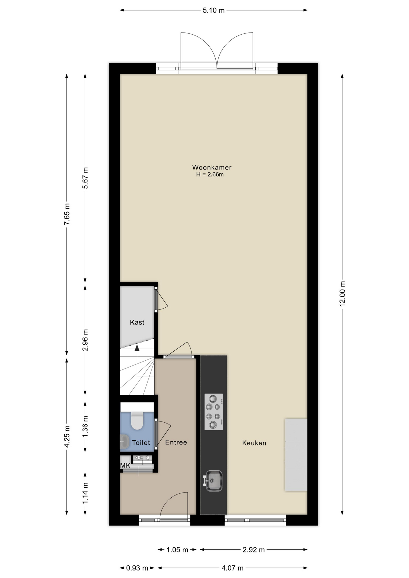 De hal biedt toegang tot de ruime woonkamer en het toilet met fontein. De tuingerichte woonkamer is direct bij binnenkomst een fijne verrassing: extra ruim dankzij de uitbouw en voorzien van een moderne pvc-vloer met vloerverwarming, strak stucwerk en openslaande deuren naar de zonnige achtertuin. Aan de voorzijde van de woning bevindt zich de open keuken, die compleet is uitgerust met een 5-pits gaskookplaat, combi-oven, koel-vriescombinatie, vaatwasser en afzuigkap. Hier bereid je de lekkerste maaltijden!