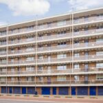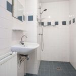 5e verdieping: Je komt het appartement binnen via de entree met meterkast. De gang geeft toegang tot alle vertrekken en beschikt aan het einde over een vaste kast voor extra opbergruimte. De lichte woonkamer heeft grote ramen die zorgen voor een prettige lichtinval. Aangrenzend aan de woonkamer bevindt zich een multifunctionele (slaap)kamer, bereikbaar via dubbele deuren. Vanuit deze kamer heb je toegang tot het balkon op het zuidoosten, waar je heerlijk kunt genieten van de zon en het uitzicht op de binnentuin. Aan de achterzijde ligt een tweede slaapkamer, eveneens met toegang tot het balkon. De derde slaapkamer aan de voorzijde beschikt over een handige inbouwkast. De aparte keuken is voorzien van een eenvoudig keukenblok in drie delen met afzuigkap en een opstelplaats voor de cv-ketel. De badkamer is volledig betegeld en uitgerust met een douche, wastafel en aansluiting voor de wasmachine. Separaat vind je het toilet met fonteintje.