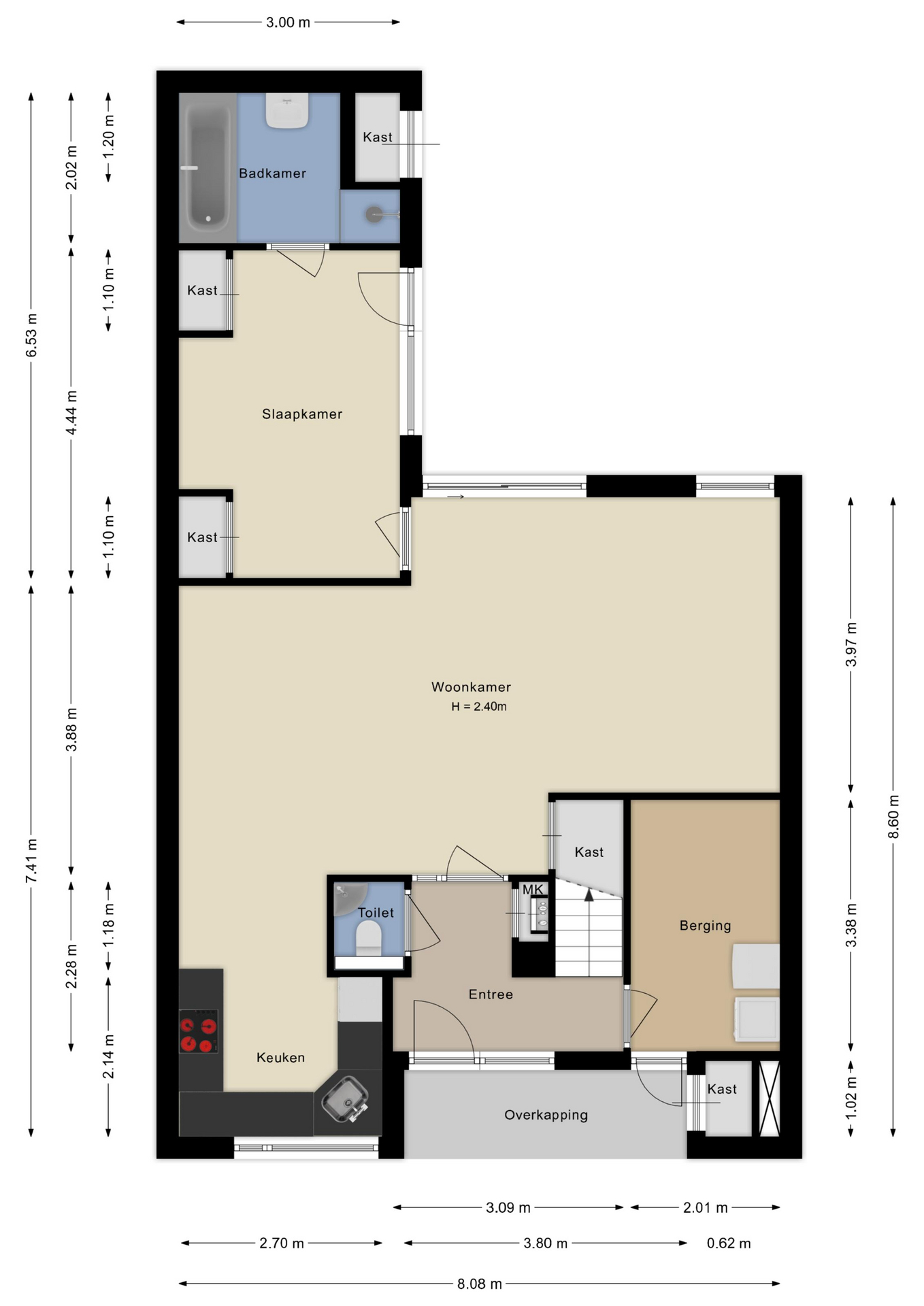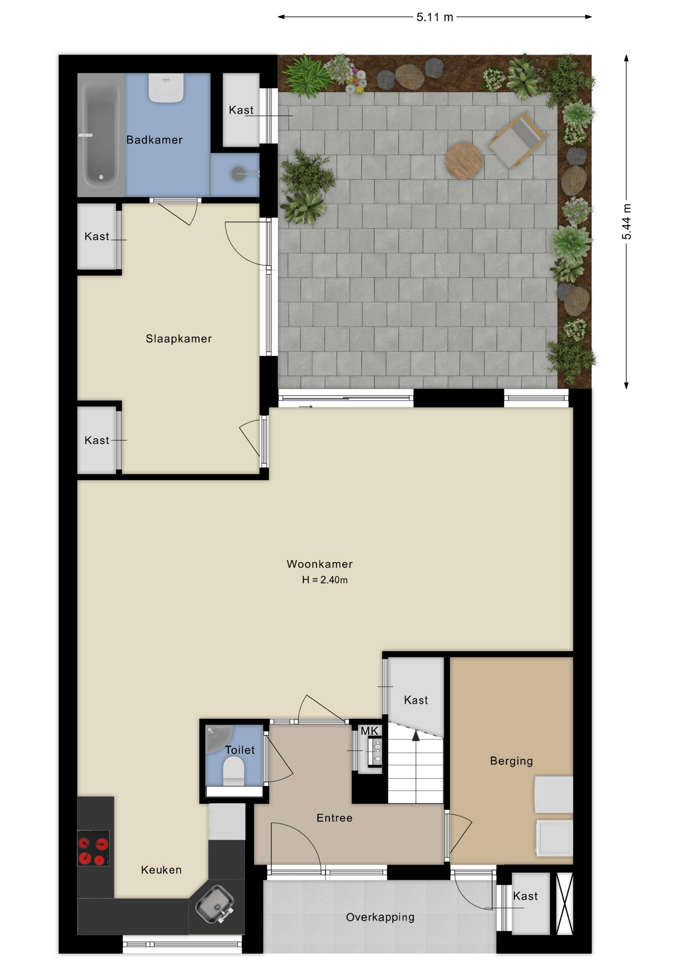 - Slaapkamer en badkamer op de begane grond voor optimaal wooncomfort.