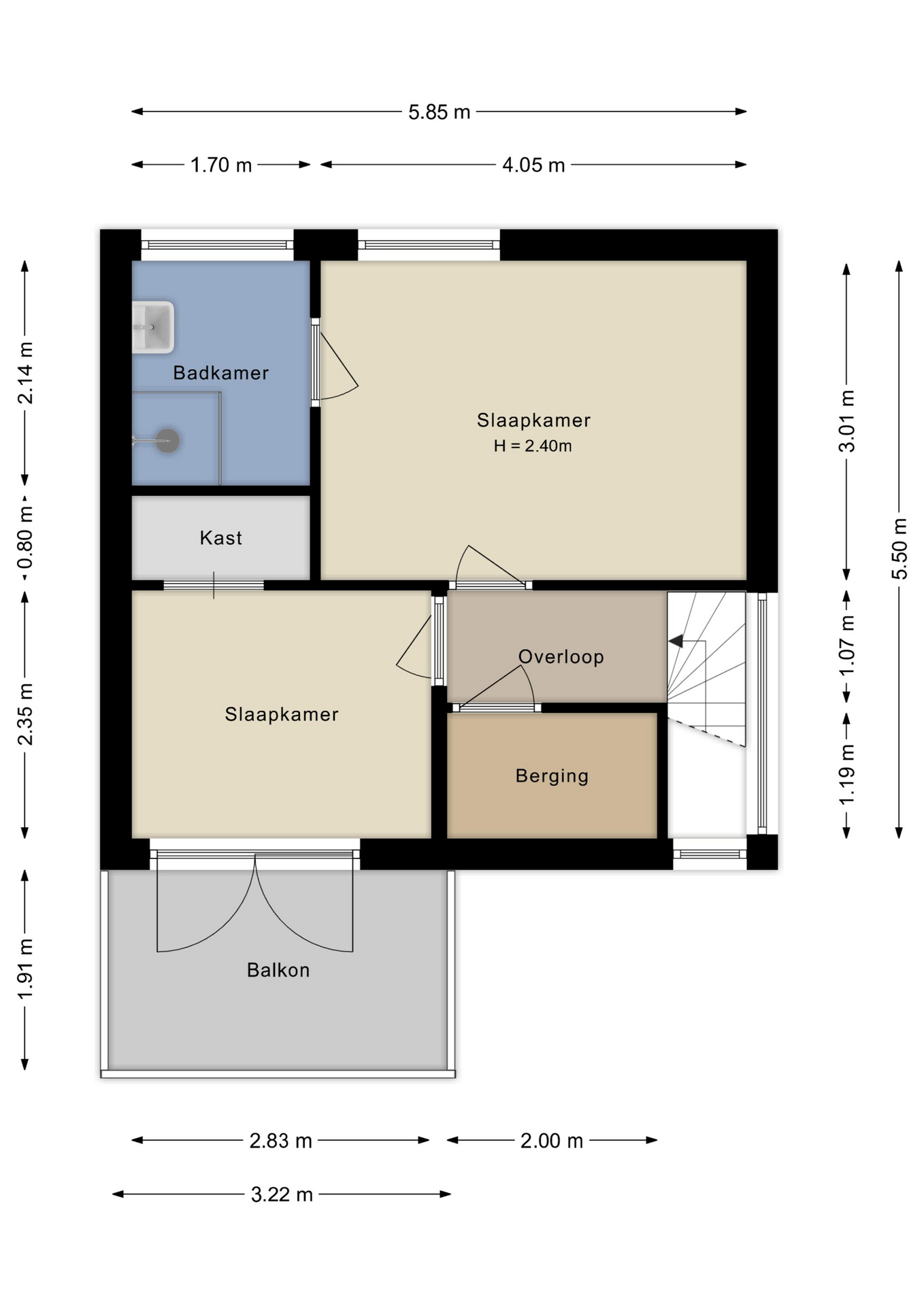 De eerste verdieping herbergt twee grote slaapkamers, beide met voldoende ruimte voor een tweepersoonsbed en kasten. De overloop biedt ook toegang tot het balkon aan de noordzijde en wasruimte. Ook is er op deze verdieping de tweede badkamer, voorzien van een douche en wastafel. Ideaal voor een drukke ochtendroutine of wat extra ontspanning aan het einde van de dag.