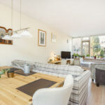 De royale doorzonkamer is heerlijk licht dankzij de grote raampartijen aan voor- en achterzijde. Een fijne leefruimte waar je met gemak een royale zithoek én een ruime eethoek creëert.