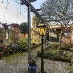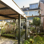 De zonnige tuin op het zuidwesten beschikt over een groot terras, groene borders en volop privacy. Achterin vind je een dubbele berging, een overkapping en een praktische achterom. Ideaal voor hobby, opslag of het stallen van fietsen.