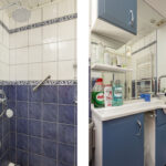 De volledig betegelde badkamer is uitgerust met een inloopdouche, wastafelmeubel en designradiator.
