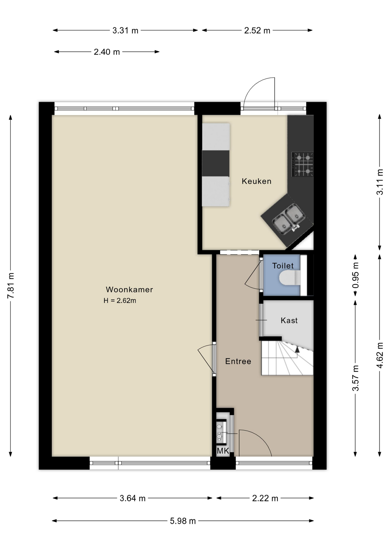 Via de ruime voortuin bereik je de entree. In de hal bevinden zich de vernieuwde meterkast, trapkast en een verzorgde toiletruimte.