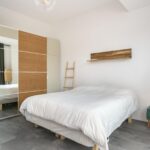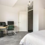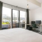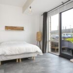 Vanuit de living heb je toegang tot de ruime slaapkamer. Deze is L-vormig en net als de living mooi hoog, zodat je veel ruimte ervaart. Hier vind je grote raampartijen (HR) voor veel invallend daglicht, evenals een openslaande deur naar het terras. De slaapkamer geeft toegang tot de badkamer, die is voorzien van fraaie betegeling (vloer én wand) en een designradiator. Je beschikt over een badkamermeubel met lades, wastafel en spiegelkast met verlichting, en een inloopdouche met hand- en regendouche en glazen wand.