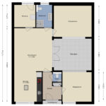 Je betreedt de woning via de overdekte entree. De hal geeft toegang tot de eerste slaapkamer (ca. 13 m²), het toilet met fonteintje en de lichte woonkamer met open keuken.