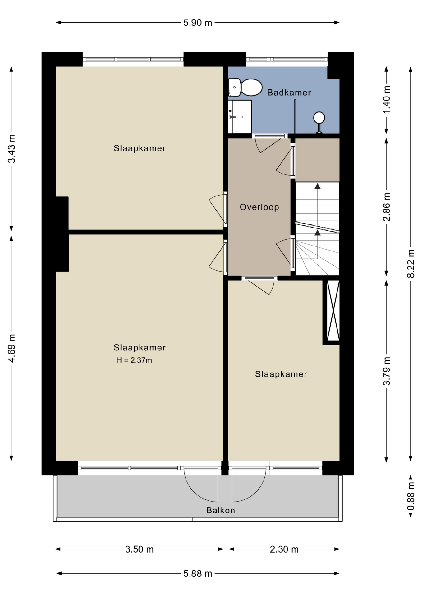 De 1e verdieping beschikt over drie slaapkamers van goed formaat, die alle zijn voorzien van vloerbedekking en structuurverfwanden. De slaapkamer aan de achterzijde is voorzien van een kunststof kozijn met draai-/kiepramen en de twee slaapkamers aan de voorzijde van de woning bieden toegang tot het balkon.