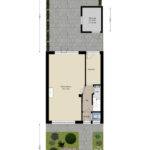 De begane grond kenmerkt zich door de hoge plafonds en de klassieke doorzonwoonkamer met schouw en dubbele deuren naar de achtertuin. De keuken is reeds verwijderd, wat je de vrijheid geeft om hier direct een moderne (woon)keuken naar eigen smaak te realiseren. De volledig bestrate achtertuin ligt gunstig op het zuidoosten en beschikt over een berging met elektra en verlichting. Uiteraard is er een achterom aanwezig.