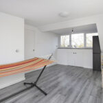 De uitgebouwde woonkamer biedt een verrassend ruime leefomgeving met open keuken en directe toegang tot de tuin via de schuifpui. Tevens is een bergkast aanwezig met ook plek voor de cv ketel.