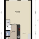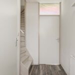 De hal/entree biedt toegang tot de ruime woonkamer, het toilet, de meterkast en trapopgang naar de eerste verdieping. De woonkamer is ca. 25 m² groot en voorzien van een trapkast en een nette open inbouwkeuken met diverse apparatuur.