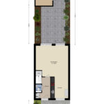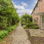 Aansluitend bevindt zich de royale achtertuin op het oosten, met stenen berging en achterom.
