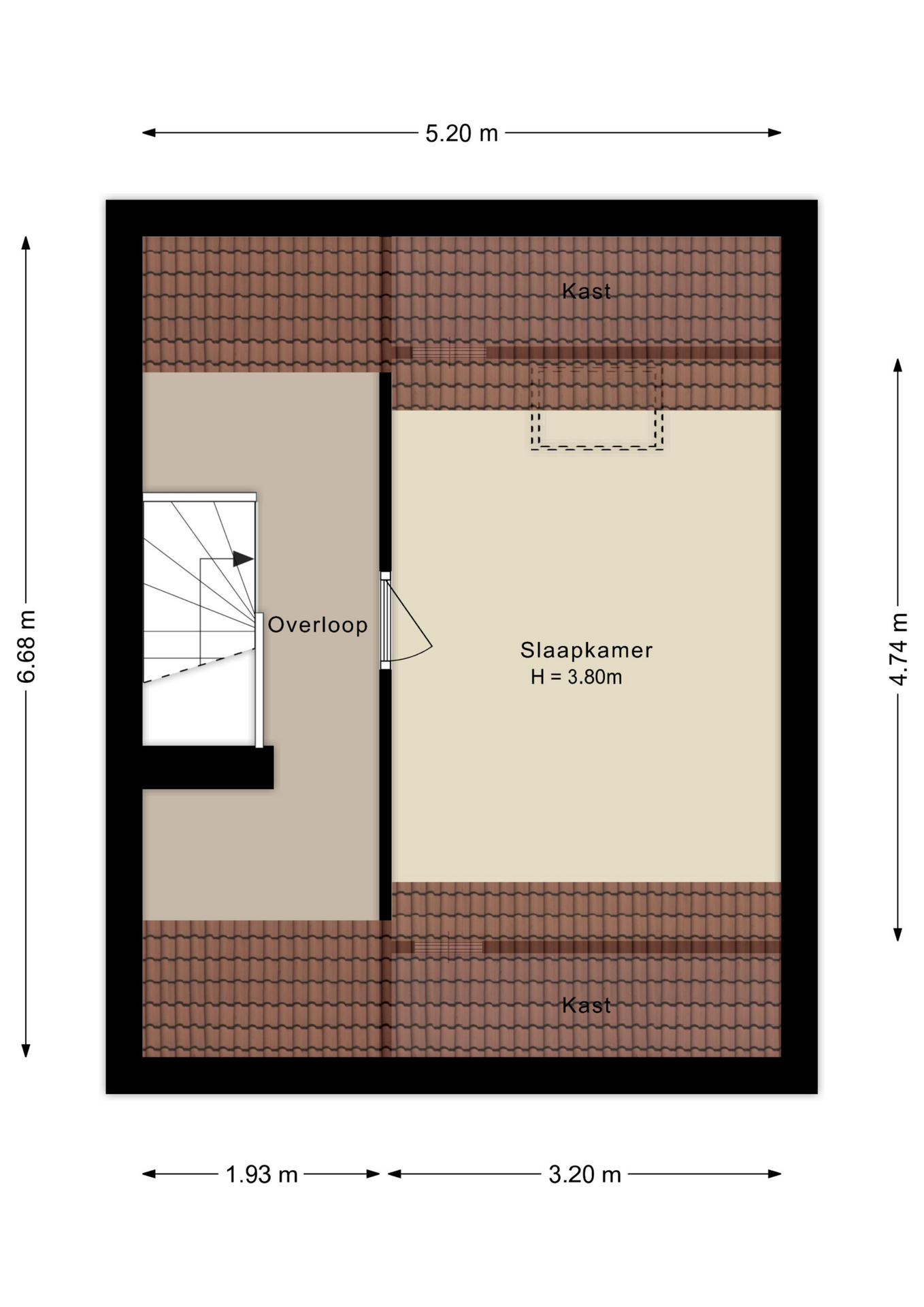 Via de overloop met wasmachine-aansluiting is de derde slaapkamer te bereiken. Deze verdieping beschikt tevens over diverse knieschotten.
