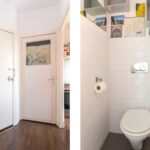 Via de trapopgang kom je op een overloop met dakraam en veel praktische opbergruimte. Er is een eigen toegangsdeur naar het appartement: zo kom je in een centraal halletje met toegang naar alle vertrekken en ook de meterkast bevindt zich in de hal.