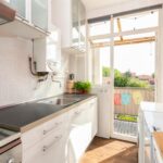 De keuken is van alle gemakken voorzien en heeft een deur naar het balkon aan de achterzijde, waarbij je wegkijkt over de tuinen van aangrenzende woningen. Hier is een gedeelte overdekt gemaakt middels een overkapping, waardoor je met de deur open kunt koken. Er liggen mooie vlondertegels op het balkon er is zonwering, waardoor je elk seizoen op je balkon kunt genieten van buiten.