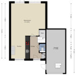 De hal/entree biedt toegang tot de ruime woonkamer, het toilet, de meterkast en trapopgang naar de eerste verdieping. De woonkamer is ca. 25 m2 groot en voorzien van een trapkast en een open inbouwkeuken. Aansluitend bevindt zich de royale achtertuin op het noordwesten.