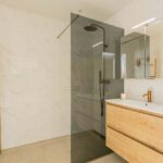 Vanuit de hal is de ruime slaapkamer bereikbaar. De luxe badkamer (2023) is ingedeeld met een inloopdouche, wastafelmeubel en handdoekenradiator. Er is comfortabele vloerverwarming in de badkamer aanwezig.