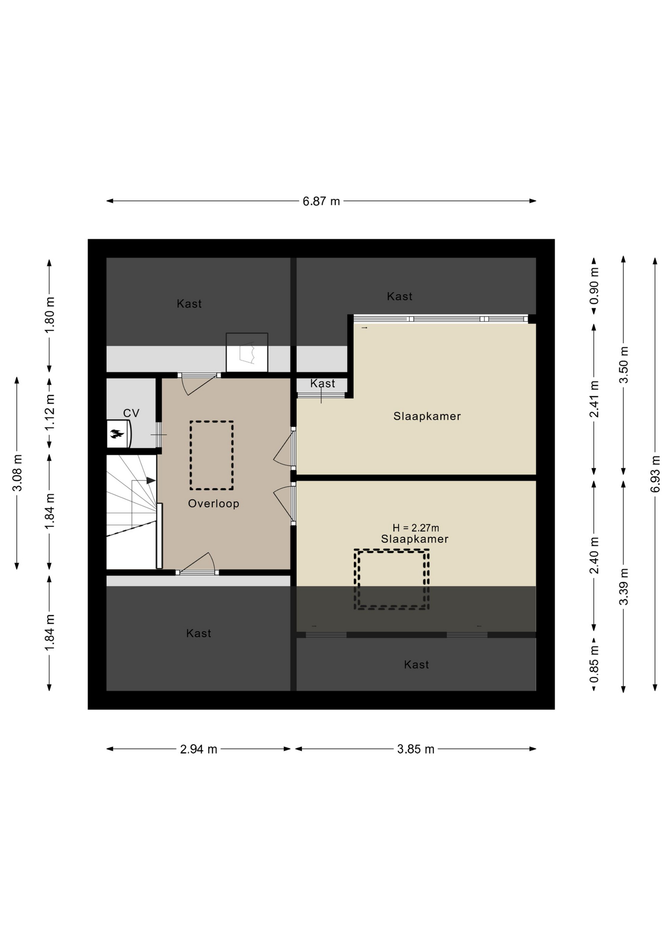 Overloop met veel bergruimte, waar ook de opstelplaats voor de cv-ketel en de wasmachine aansluiting zich bevinden. Verder vindt u hier 2 slaapkamers aan. De slaapkamer aan de achterzijde is uitgerust met een dakkapel. Goed voor het licht in deze kamer en u heeft er leuk uitzicht door! De slaapkamer aan de voorzijde heeft een groot Velux dakraam. Aan beide zijkanten van deze verdieping bevinden zich knieschotten met extra bergruimte.