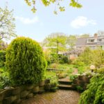 Aan de achterzijde van de woning bevindt zich de diepe tuin, op het zuidoosten die speels is aangelegd. De achtertuin is gelegen aan het water met uitzicht op het Meentpark.