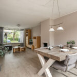 De royale woonkamer is bijzonder licht door de grote raampartijen aan beide zijden van de woning. De begane grond beschikt over kunststof kozijnen met dubbele beglazing.